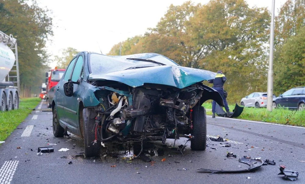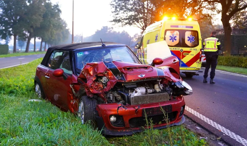 Het ging mis nadat een groene auto met zeer hoge snelheid vanaf landgoed Haarendael, dat haaks aan de N65 ligt, door de poort naar de N65 kwam gereden. De bestuurder reed door de heg, ramde een lantaarnpaal en reed een verkeersbord uit de grond.