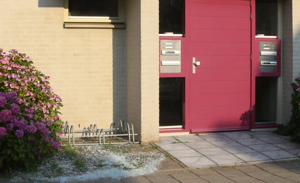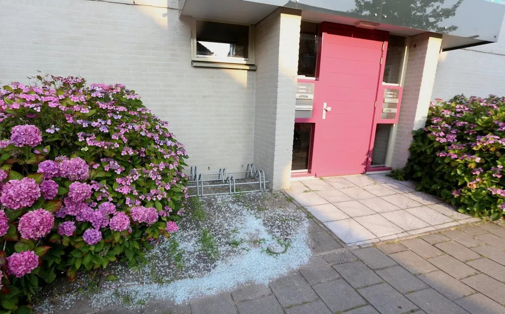 De ruit was ongeveer een meter bij twee meter en was afkomstig van het balkon op de bovenste verdieping. Er raakte niemand gewond. De politie doet onderzoek naar het incident.