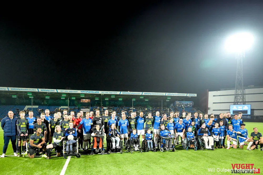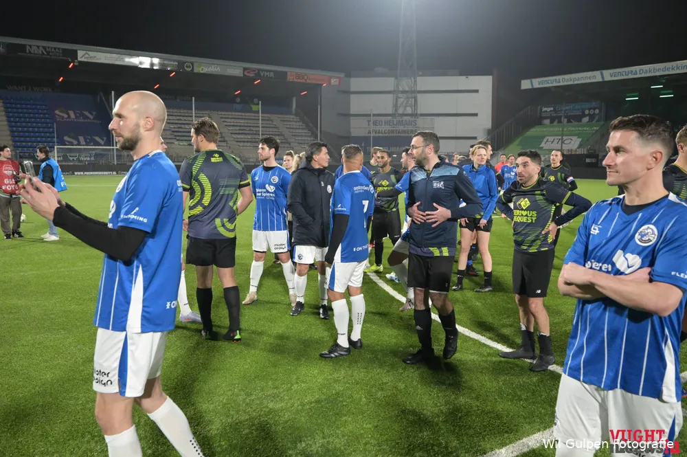 De uitslag was bijzaak. De sfeer in het stadion was warm en uitgelaten, met applaus voor beide teams. Na het laatste fluitsignaal trokken spelers massaal richting de tribunes voor selfies en handtekeningen. Lachende gezichten, vermoeide benen en een gedeeld gevoel van trots overheersten.