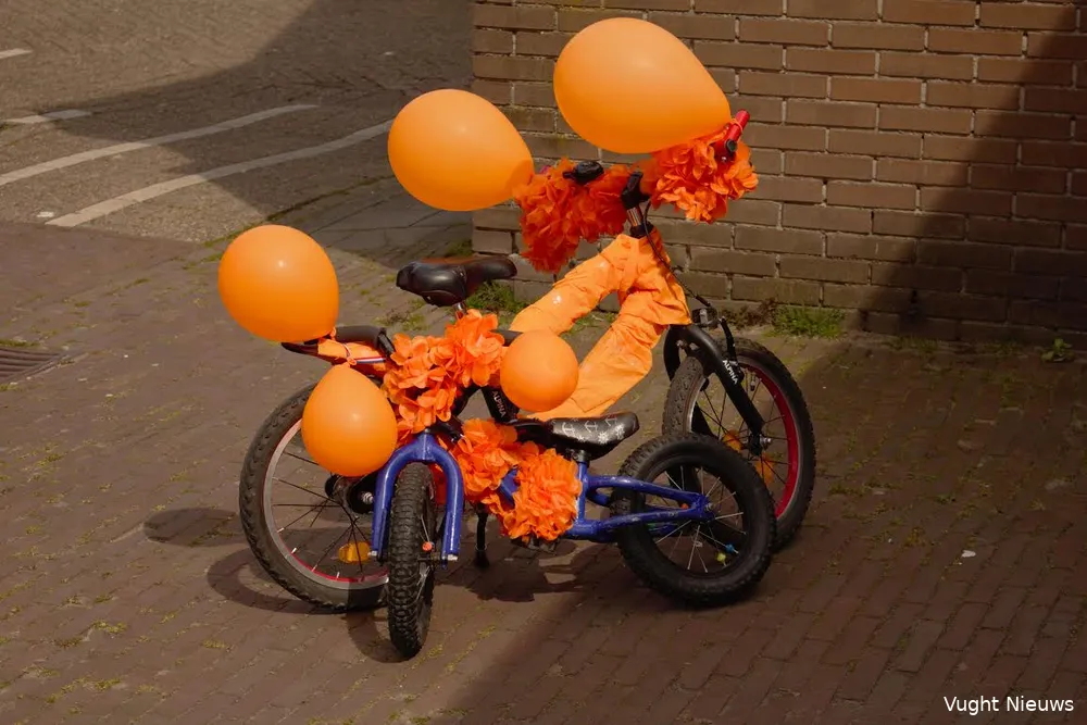 Het was een drukte van belang op de vrijmarkt, waar naast de vele kraampjes en kleedjes, ook enkele attracties voor de kinderen en podia met muziek waren. De verwachte regen bleef grotendeels weg en daardoor zaten de terrasjes ook gezellig vol. Al met al een geslaagde Koningsdag in Vught.