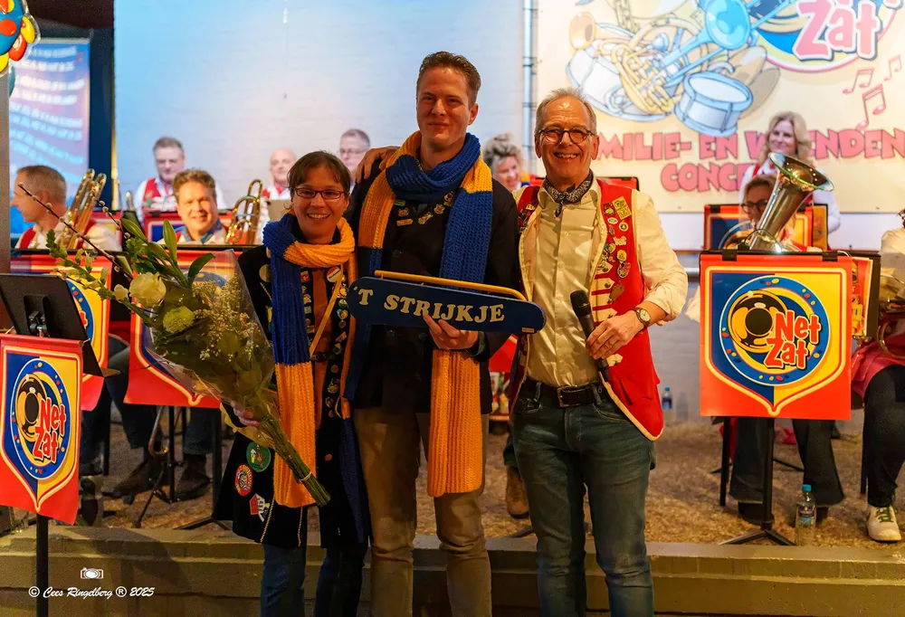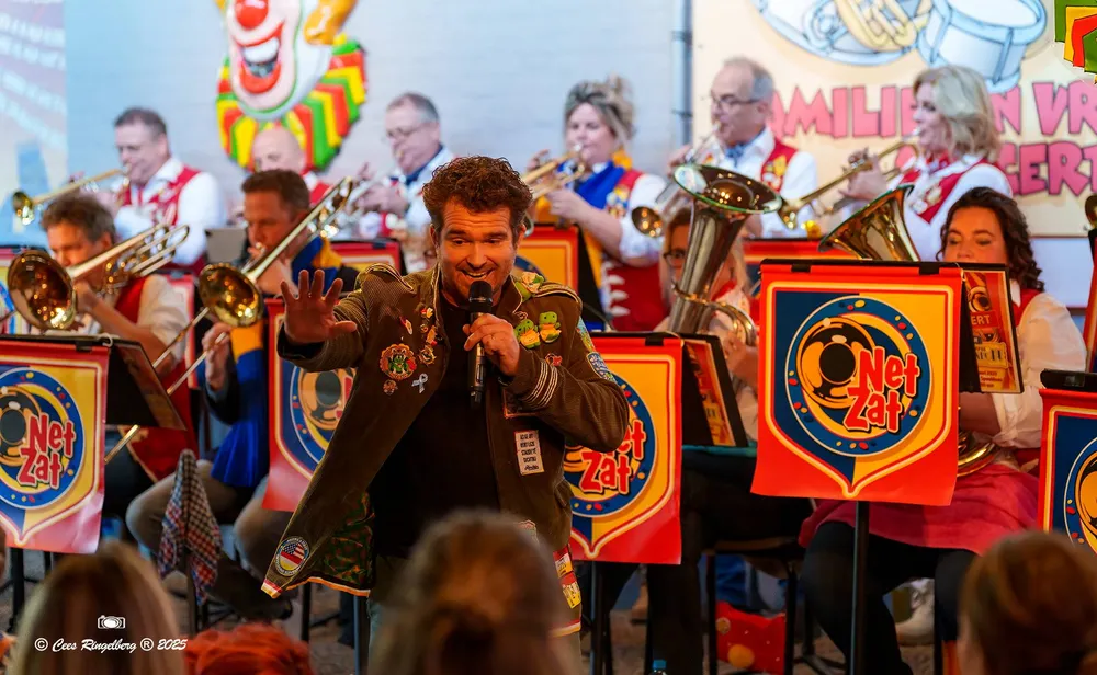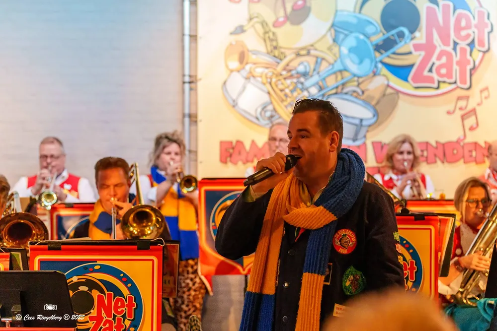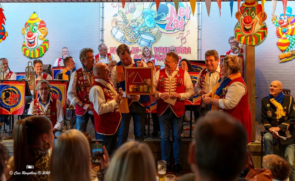 Onder het genot van een hapje en drankje presenteerde Siebren van der Zee het programma. Net Zat brengt de carnavaleske sfeer tot leven met een mix van vrolijke muziek. Ook was er een Optreden van de Vughtse zangers Jaap van der Heijden, Olav Pijnenburg en Jos Stoof. Naast muziek stond deze middag ook in het teken van humor. Tijdens de pauzes zorgen de leden van Net Zat voor luchtige en pretentieloze flauwekul. Tevens werden de onderscheidingen ‘Triangel’ en ‘het Strijkje’ uitgereikt.