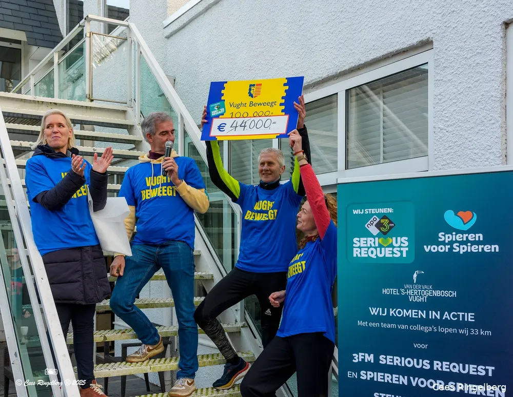 Samen met Loopschool Wim Akkermans en Prins Hendrik organiseerde de gemeente Vught afgelopen zondag een sponsorloop. Oorspronkelijk stond er 44.000 euro op de teller, maar dat bedrag werd later doorgekrast. Er werd maar liefst € 100.000 opgehaald voor het goede doel, dat dit jaar Spieren voor Spieren, waarmee het streefbedrag ruimschoots werd overtroffen.