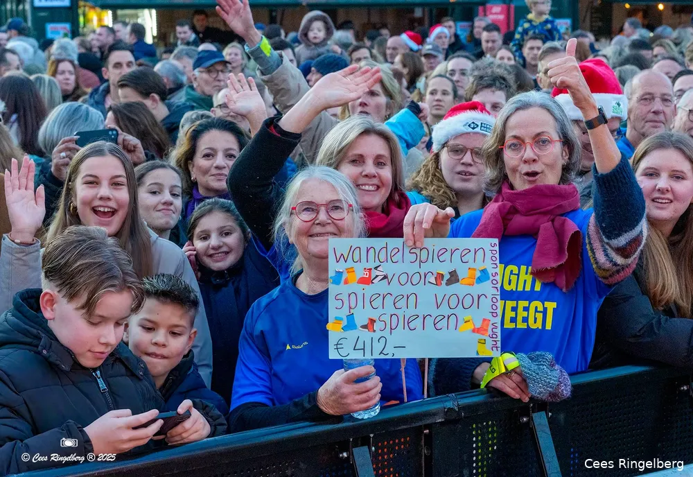 Dit bedrag werd feestelijk overhandigd bij het Glazen Huis. De actie, waarbij deelnemers verschillende afstanden liepen, was een groot succes, met veel enthousiasme en deelname van honderden mensen, waaronder leden van sportclub Prins Hendrik en vele anderen, die zich hebben ingezet voor kinderen met een spierziekte.