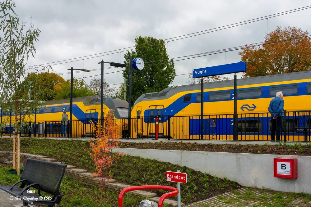 Uiteindelijk vertrok maandag om twee minuten voor half vier de eerste Sprinter vanaf het nieuwe tijdelijke station in Vught. Dat station ligt vijfhonderd meter van het huidige station.