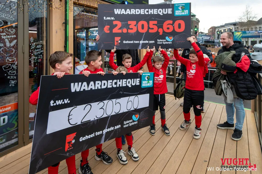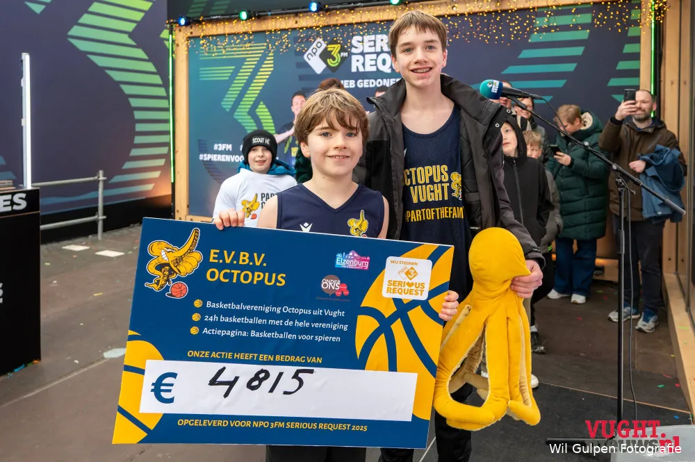 Ook bedrijven zoals Public Move Detachering & Advies uit ’s-Hertogenbosch mochten een mooie cheque overhandigen. Niet bang voor een beetje kou waren de jonge spelers van basketbalvereniging Octopussy uit Vught. Zij haalden een mooi bedrag op door met de hele vereniging 24 uur lang te basketballen onder het motto “Basketballen voor Spieren”.