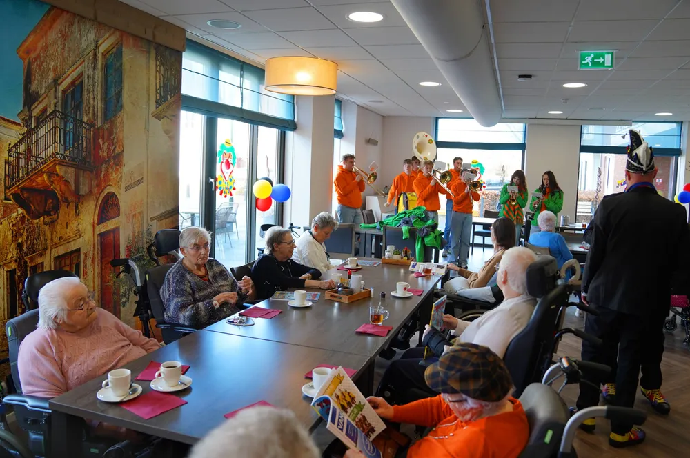 Bewoner Kees van Haaren had de eer om samen met Prins Rubke d’n Urste en de Raad van Elf de vlag in de mast te hangen.In de woonkamer van het zorgcentrum zorgde jeugdkapel De Keikes voor een sfeervol muzikaal optreden.