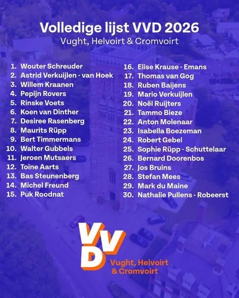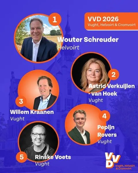 Met deze brede samenstelling zet de partij een duidelijke stap richting een frisse koers, waarbij ervaring en nieuwe energie worden gecombineerd. Het nieuwe team VVD Vught, Helvoirt en Cromvoirt presenteert een betrokken en daadkrachtige ploeg voor de komende raadsperiode.