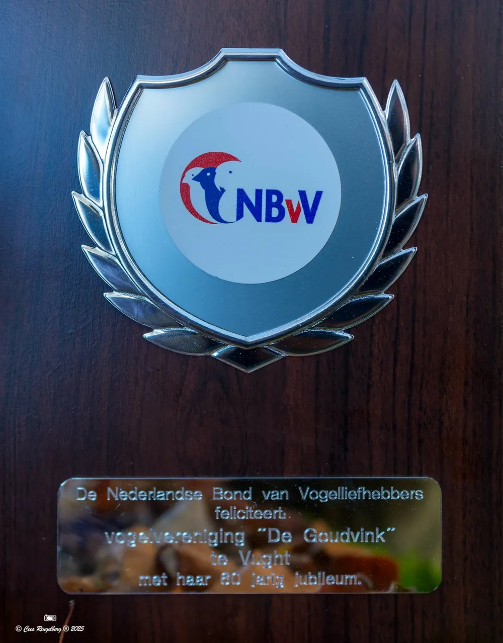 Tijdens 15e editie van de volgelshow van De Goudvink afgelopen weekend werden enkele leden onderscheiden. Ad van der Doelen werd onderscheiden met een speciaal bondsspeldje als waardering van de Nederlandse Bond van Vogelliefhebbers voor zijn tomeloze inzet voor De Goudvink, als bestuurder en technische man van de vereniging. Tevens waren twee leden 40 jaar lid. Zowel William van Uden als Bert van Zandbeek werden in het zonnetje gezet.