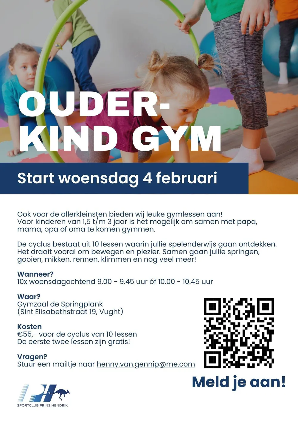 Bewegen begint al op jonge leeftijd! Daarom bieden wij speciaal voor kinderen van 1,5 t/m 3 jaar vrolijke en speelse gymlessen aan, samen met papa, mama, opa of oma.